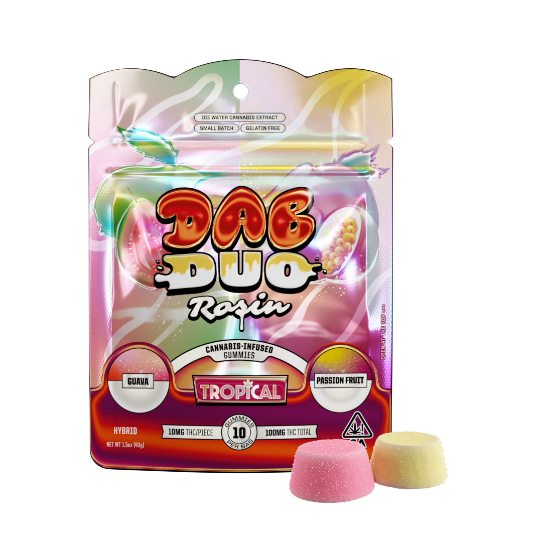 Introducing Dab Duos, the rosin gummies that hit like a dab and smack like a sweet. Each bag contains TWO delicious rosin gummy flavors