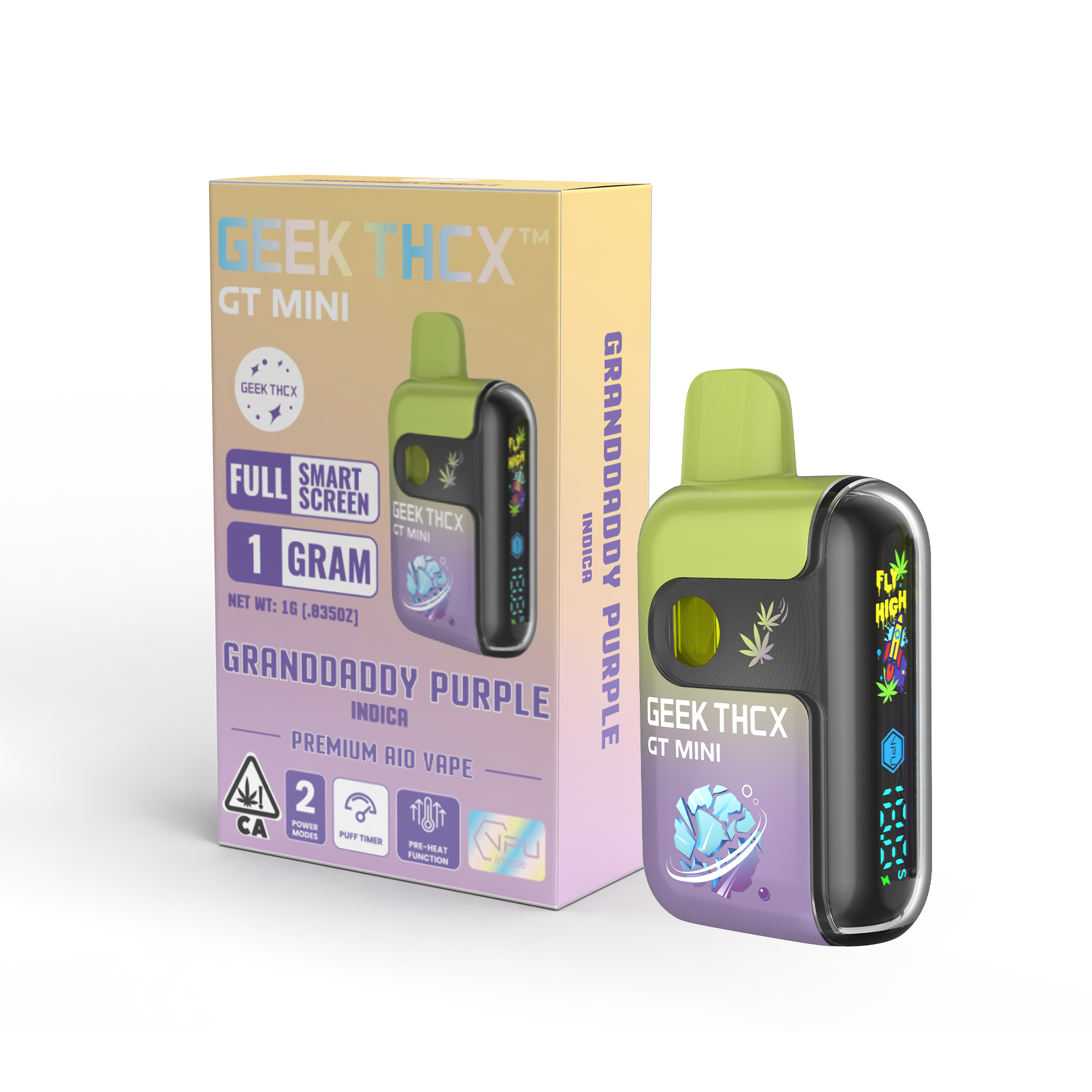 GEEK THCX™ brings cutting-edge vape technology to cannabis. Our GT MINI 1g all-in-one devices feature the first-ever full-screen dual-mesh vape, powered by the VPU chip from GEEK BAR for ultra-smooth draws. Filled with 90%+ potency, pesticide-free, full-spectrum oil, every puff delivers clean flavor and powerful effects. With interactive features like a puff counter and battery display, GEEK THCX™ blends premium cannabis with next-gen tech—built for trendsetters, OGs, and anyone who wants the real deal.