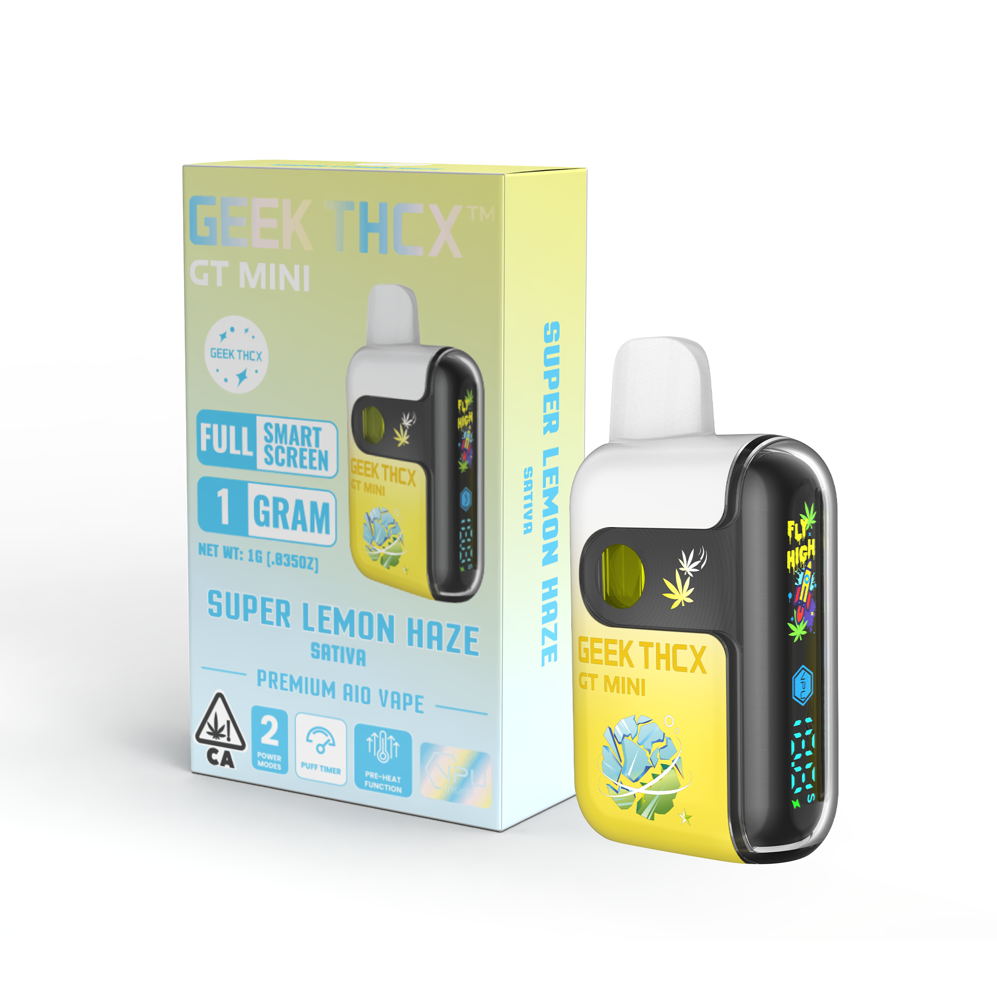 GEEK THCX™ brings cutting-edge vape technology to cannabis. Our GT MINI 1g all-in-one devices feature the first-ever full-screen dual-mesh vape, powered by the VPU chip from GEEK BAR for ultra-smooth draws. Filled with 90%+ potency, pesticide-free, full-spectrum oil, every puff delivers clean flavor and powerful effects. With interactive features like a puff counter and battery display, GEEK THCX™ blends premium cannabis with next-gen tech—built for trendsetters, OGs, and anyone who wants the real deal.