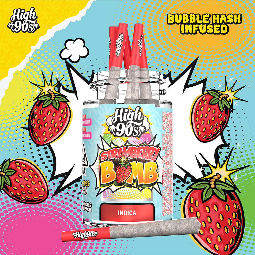 Boom—time to kick back with Strawberry Bomb, an Indica that delivers a slow, sweet explosion of relaxation. This knockout cross of Strawberry Mochi and Glitter Bomb brings a rich, berry-forward flavor with creamy, gassy undertones that hit just right. Perfect for unwinding after a long day, Strawberry Bomb melts away stress and settles you into full-body bliss. Light up, sink in, and let the good vibes detonate