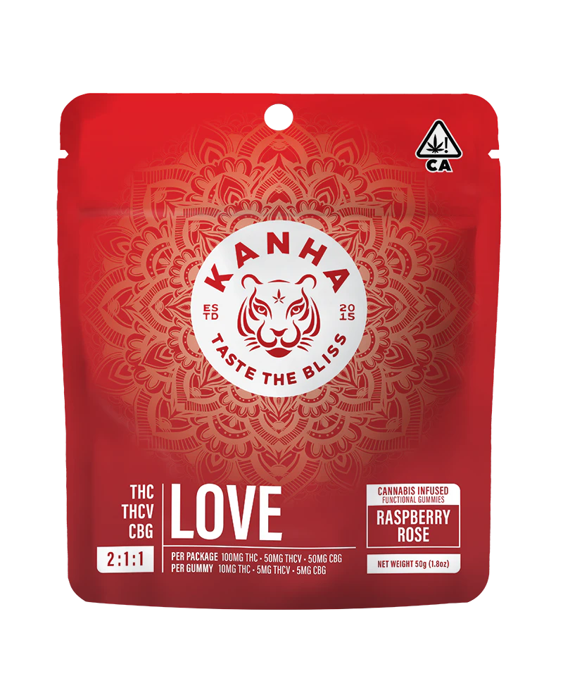 Experience deep euphoria, enhanced mood and amplified arousal in every bite. Our LOVE gummy combines the delicious flavors of Raspberry and Rose with a perfectly formulated 2:1:1 threesome of THC, CBG and THCV.