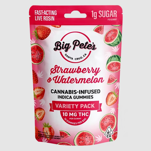 Treat yourself to the mouthwatering blend of fresh strawberries and juicy watermelon with these fast-acting Indica gummies. Powered by live rosin for a smooth, pure experience, each gummy is made with real fruit juice and contains just 1 gram of sugar—50% less than most gummies. Vegan and gluten-free, they’re the perfect way to relax and enjoy a burst of refreshing flavor without compromise.