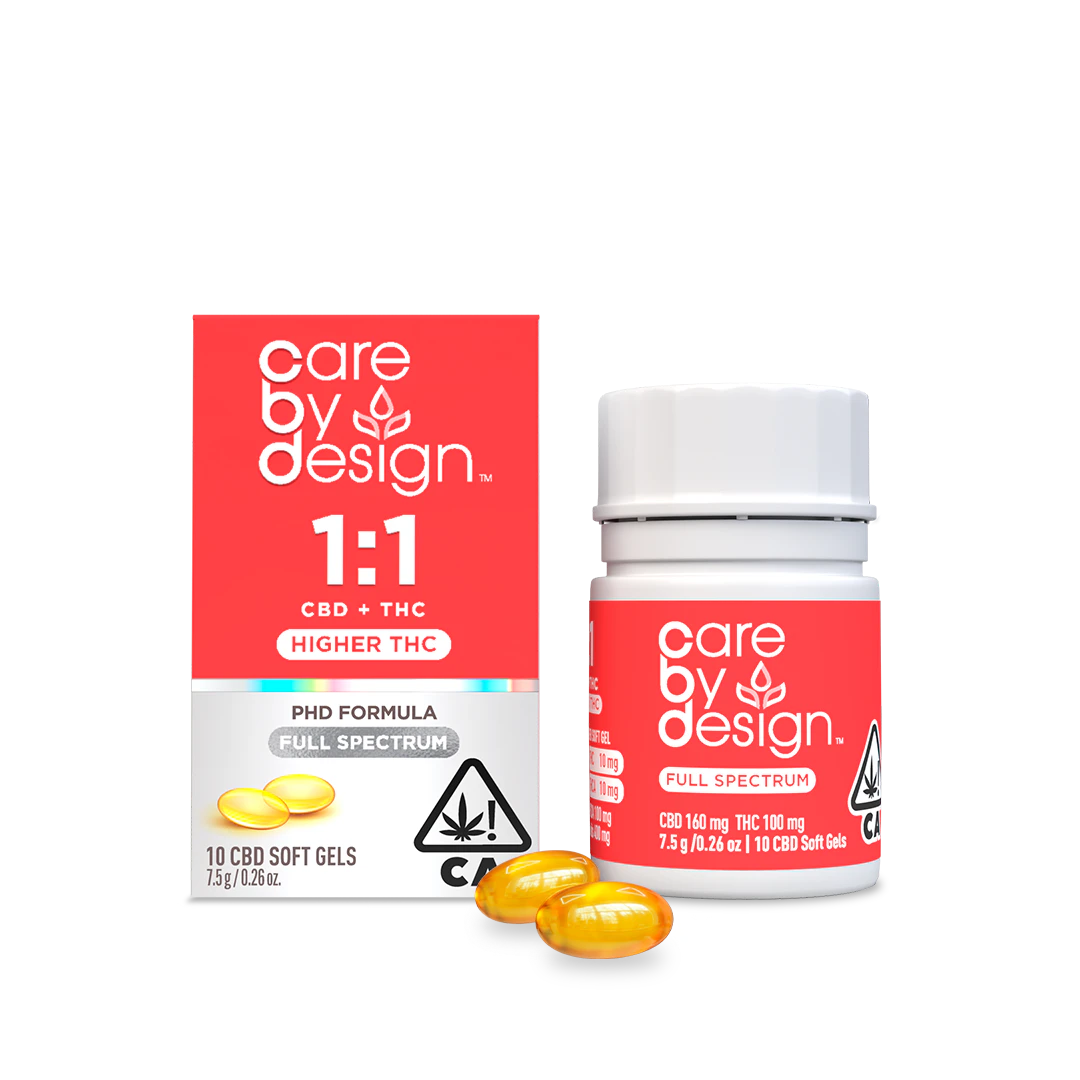 Relax, soothe your body, recover from exercise, or promote a restful night’s sleep with our 1:1 ratio of soft gel capsules. The 1:1 ratio includes full-spectrum cannabis that is equal parts CBD, THC, and contains the minor cannabinoids THCa and CBDa in a convenient, simple capsule. Easy to dose, and potent, the 1:1 is perhaps our most popular ratio. Designed for experienced cannabis users and those looking for unwinding in the evening or needing a good night’s sleep. We’ve included coconut oil into our formula to support absorption in the body. Intended for oral consumption. Onset time & tolerance varies per individual so consume accordingly.
