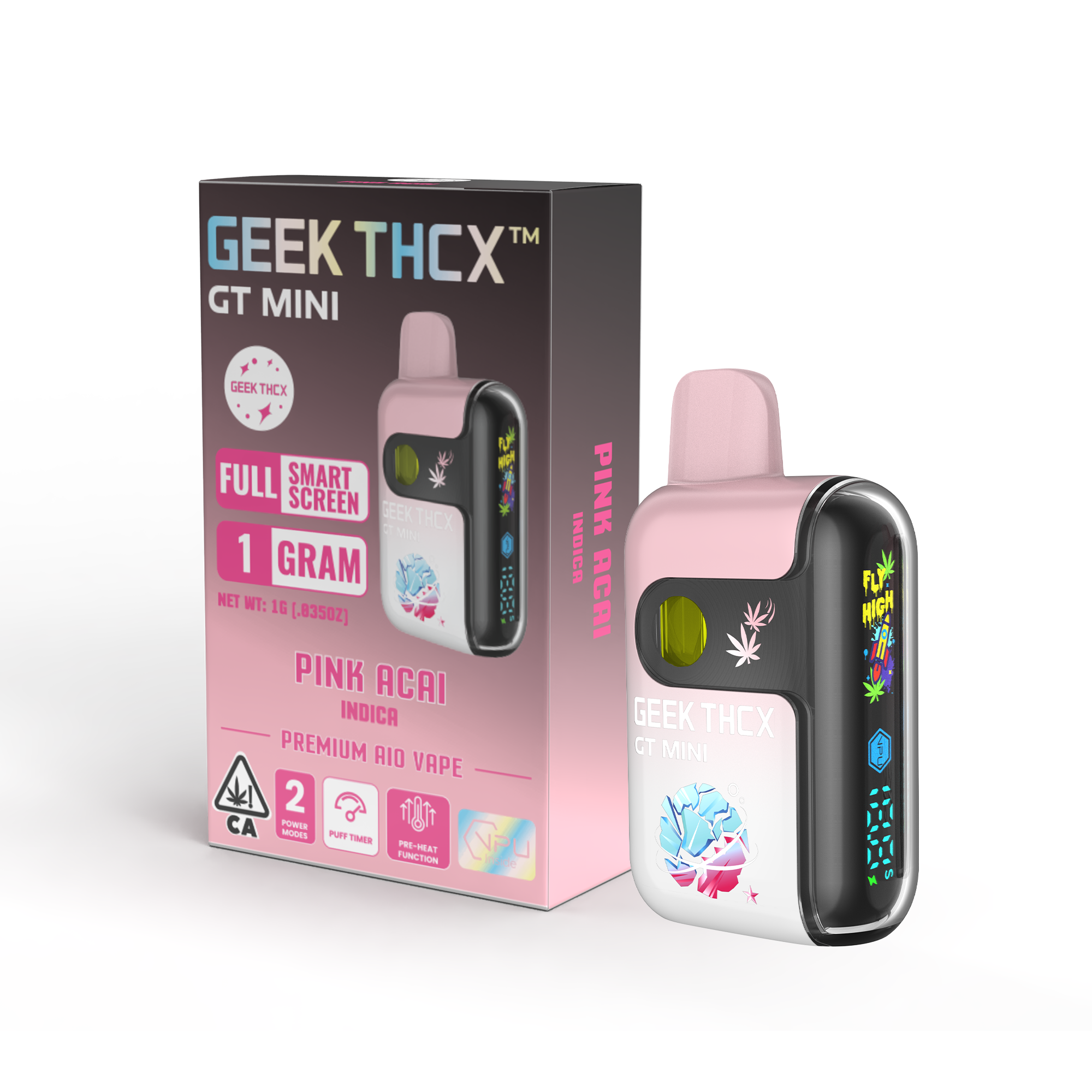 GEEK THCX™ brings cutting-edge vape technology to cannabis. Our GT MINI 1g all-in-one devices feature the first-ever full-screen dual-mesh vape, powered by the VPU chip from GEEK BAR for ultra-smooth draws. Filled with 90%+ potency, pesticide-free, full-spectrum oil, every puff delivers clean flavor and powerful effects. With interactive features like a puff counter and battery display, GEEK THCX™ blends premium cannabis with next-gen tech—built for trendsetters, OGs, and anyone who wants the real deal.