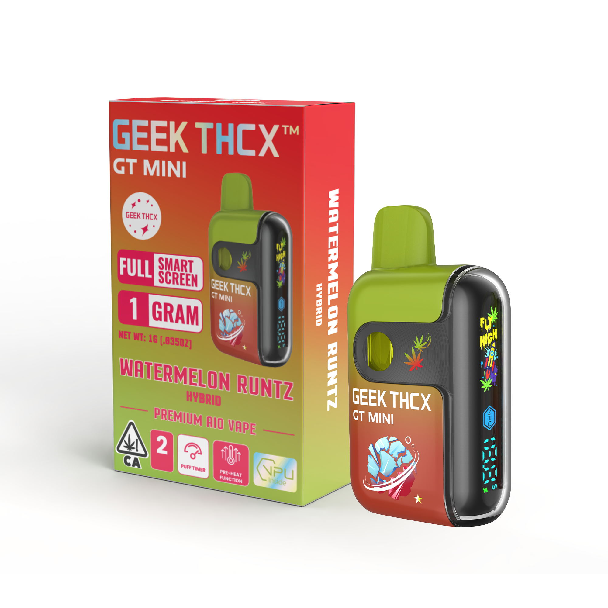 GEEK THCX™ brings cutting-edge vape technology to cannabis. Our GT MINI 1g all-in-one devices feature the first-ever full-screen dual-mesh vape, powered by the VPU chip from GEEK BAR for ultra-smooth draws. Filled with 90%+ potency, pesticide-free, full-spectrum oil, every puff delivers clean flavor and powerful effects. With interactive features like a puff counter and battery display, GEEK THCX™ blends premium cannabis with next-gen tech—built for trendsetters, OGs, and anyone who wants the real deal.