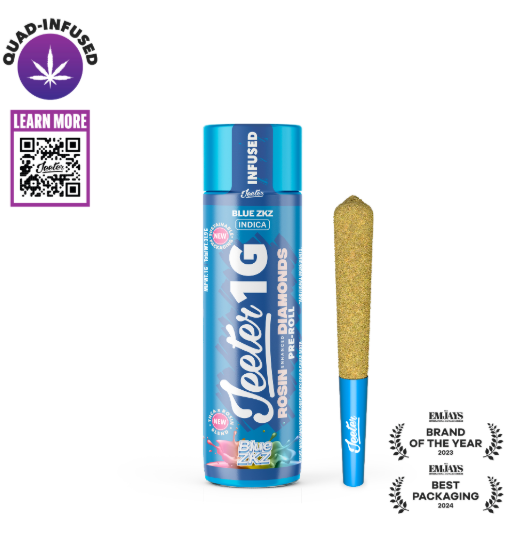 Blue ZKZ is an indica cross of Blue Diamond and Zkittlez. This odoriferous flower offers a terpene profile of tart citrus, sweet earth, and wildflowers. The physical effects of this strain are warm, easy and moderately sedating, igniting appetite while weighing on the limbs. Its strong physical effects and uplifting mental high make it a perfect end-of-the-day strain, and users report it to be a nice match for folks contending with stress, restlessness, and pain.