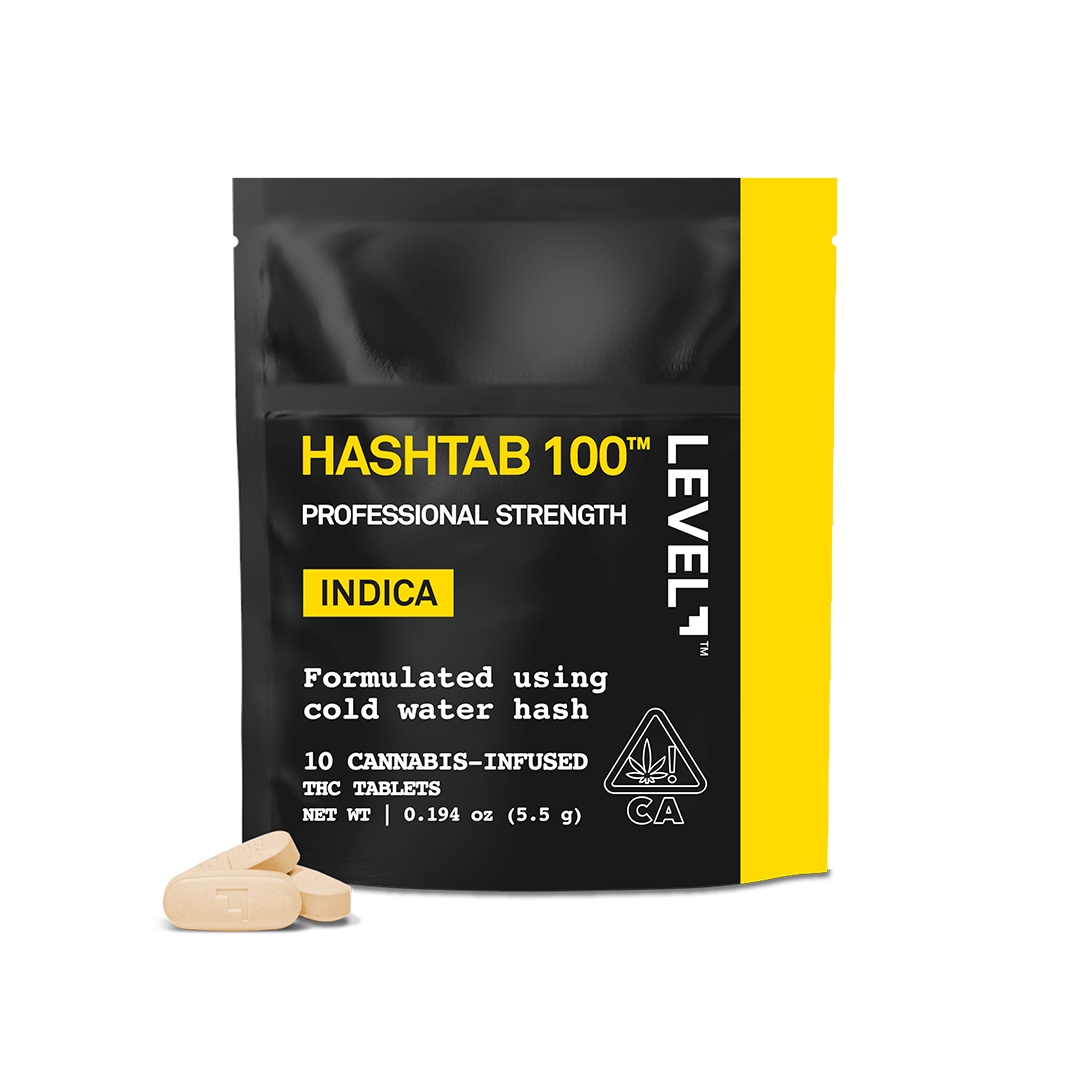 Our classic hash high is also available in a 100 mg single pack. The LEVEL Sativa Hashtab 100 single pack contains one 100 mg professional-strength swallowable cold water hash tablet that takes effect in 30–90 minutes, with a duration of 3–6 hours. Should you wish to consume a lighter dose, the tablets are scored so you can easily split each tablet in half.