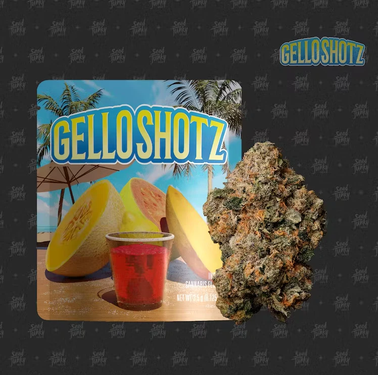 Gello Shotz is a bright sativa with a tropical feel that produces a strong flavor of lime skittles. Gello Shotz gives you a boost of energy and creativity making this great for daytime use.