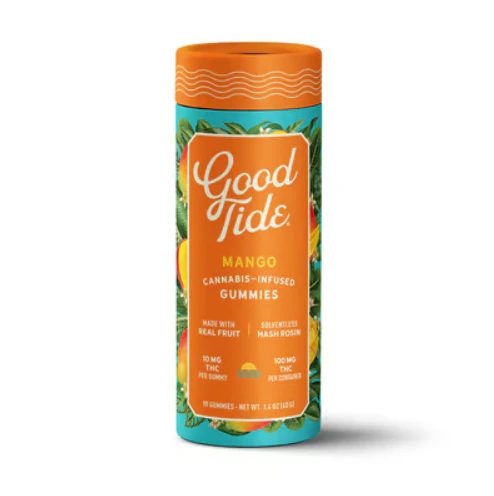 Vibe out poolside with Good Tide mango gummies. Naturally rich in myrcene, real mango makes an ideal match for our indica-leaning rosin. With naturally occurring terpenes and minor cannabinoids present in our solventless hash rosin, our mango gummies are dripping with relaxing plant properties to produce a mellow, laid back high. Unwind and drift into a tropical state of mind