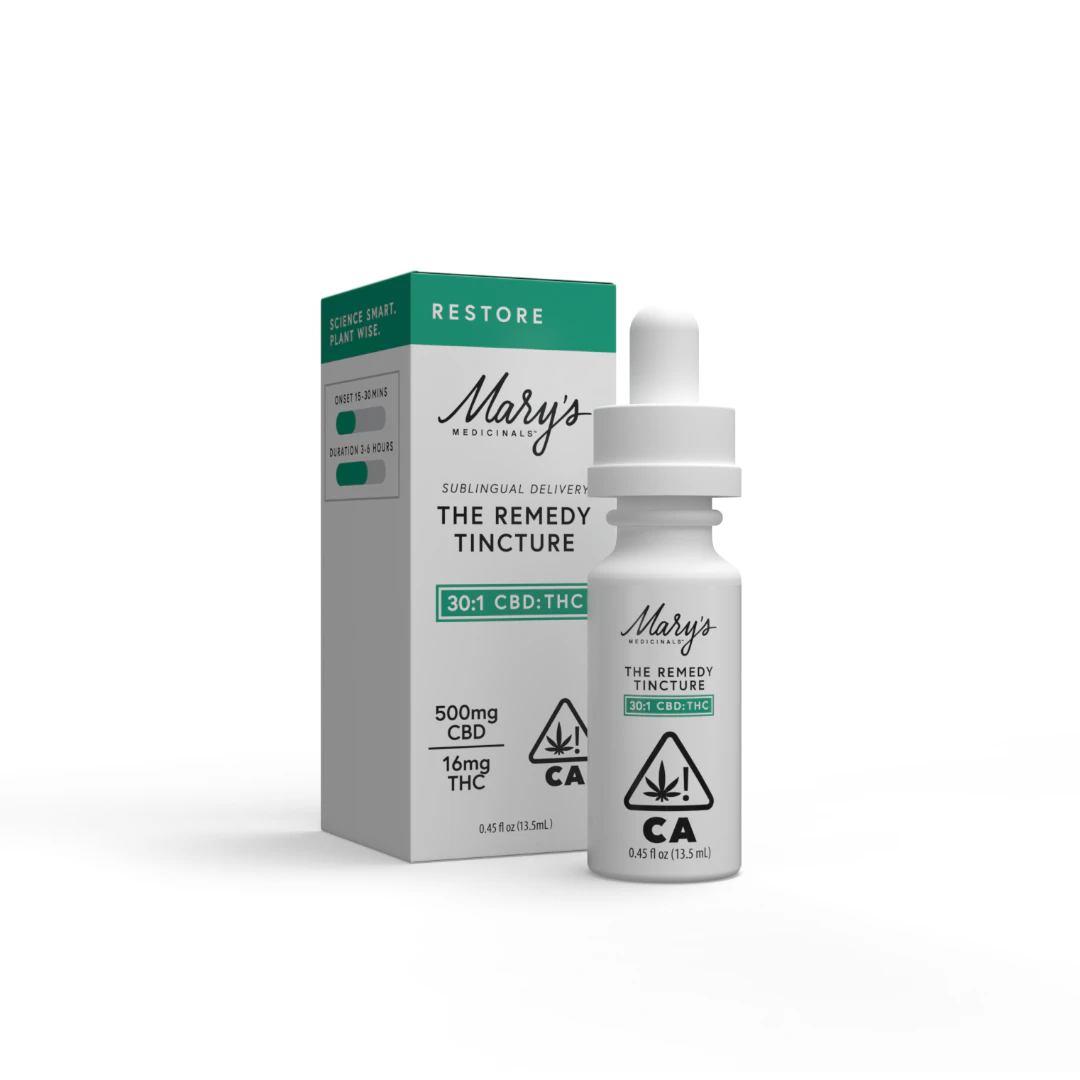 Infused with essential oil of cinnamon and myrrh, Mary’s Restore Tincture is your path to wellness and vitality. Featuring restorative terpenes like beta-caryophyllene and humulene, known for their anti-inflammatory qualities. Embrace the combined benefits of a non-intoxicating CBD-forward tincture with supporting THC, carefully curated to support your body’s natural processes.
