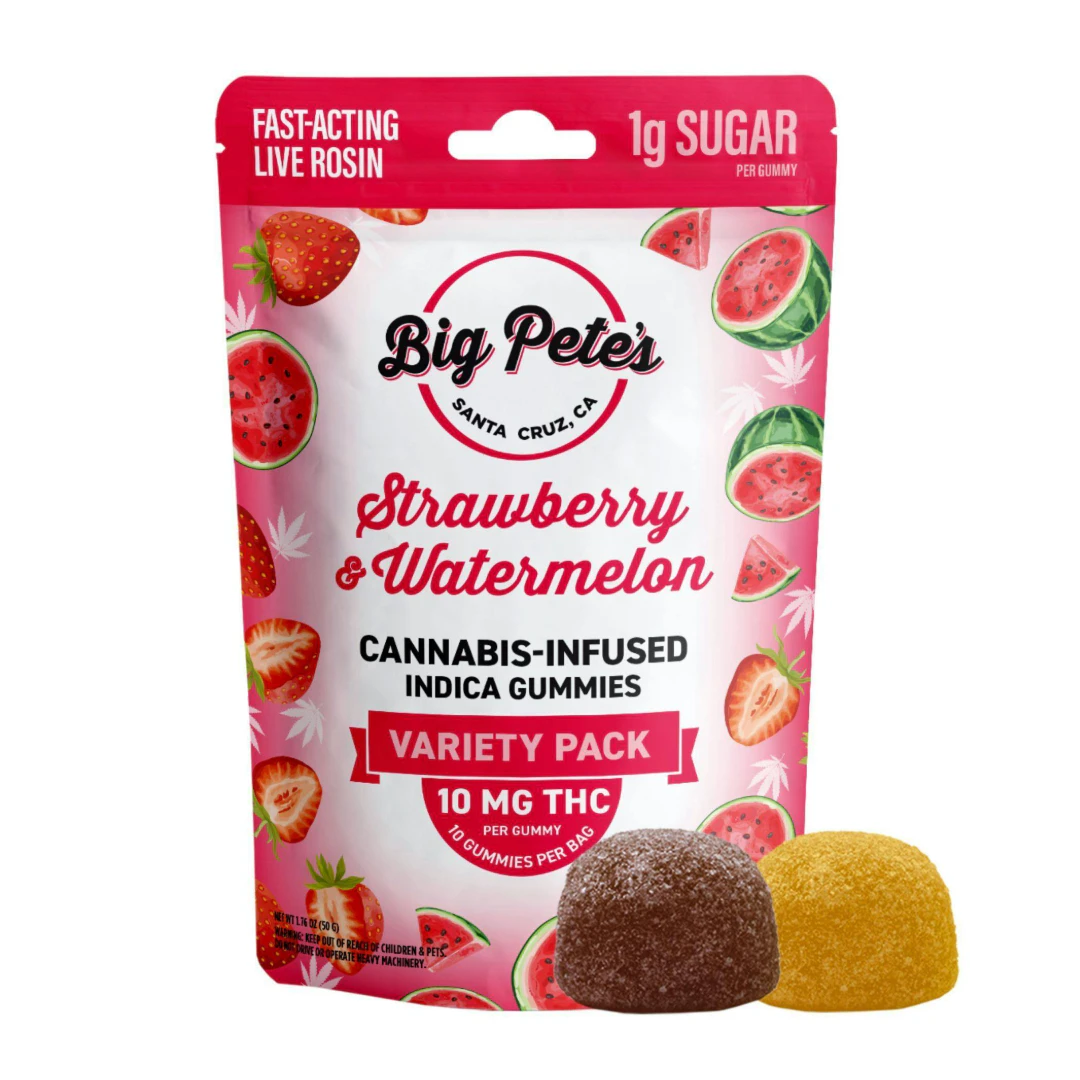 Treat yourself to the mouthwatering blend of fresh strawberries and juicy watermelon with these fast-acting Indica gummies. Powered by live rosin for a smooth, pure experience, each gummy is made with real fruit juice and contains just 1 gram of sugar—50% less than most gummies. Vegan and gluten-free, they’re the perfect way to relax and enjoy a burst of refreshing flavor without compromise.