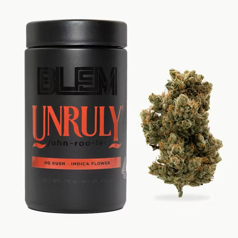UNRULY \uhn-roo-lee\ - OG KUSH INDICA – slang for rebellious. It’ll slap you in the face! This hard hitting OG is reminiscent of the early 2000s—with a dense structure like a rock and a nose of straight gas, it will bring you back to the days when you first smoked OG Kush. Real quality OG grown right. Unparalleled, unruly--a true OG smokers’ dream!