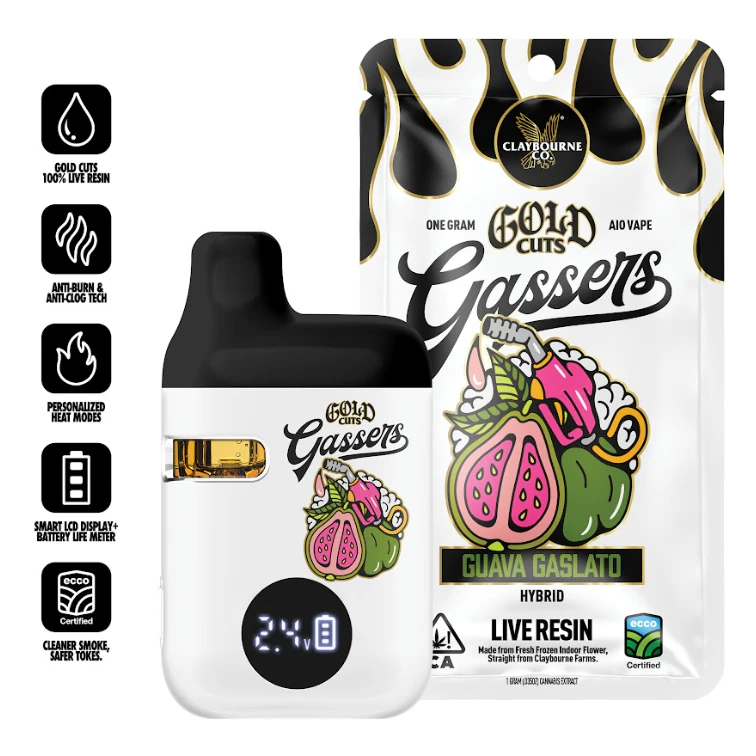 Gold Cuts Live Resin has joined the Gassers 1g AIO lineup. Crafted from strain specific, ultra-premium indoor flower grown at Claybourne Farms and frozen fresh at harvest to lock in the plant’s natural terpene and cannabinoid profile. True-to-strain live resin built for flavor, potency, and the same reliable all-in-one performance you expect from Gassers. Always on the gas.