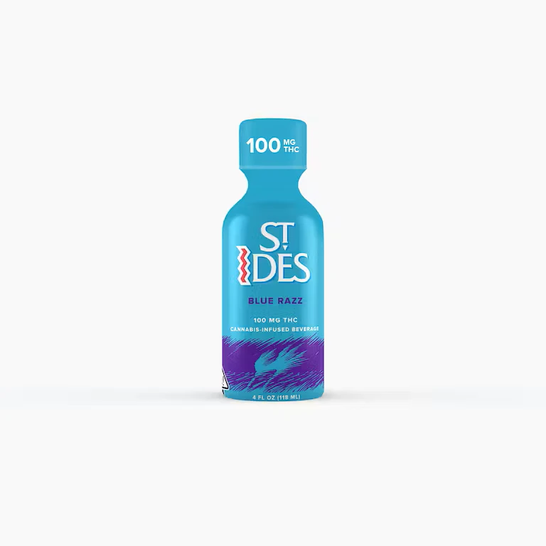 The heavy hit of ST IDES is now in liquid form! Blue Raz flavor. Don't let the size fool you. Each 4oz bottle packs 100 MG of THC Blue Raz flavor. ST IDES Cannabis Infused shots work quicker than an average edible and allow for the most efficient absorption into your system