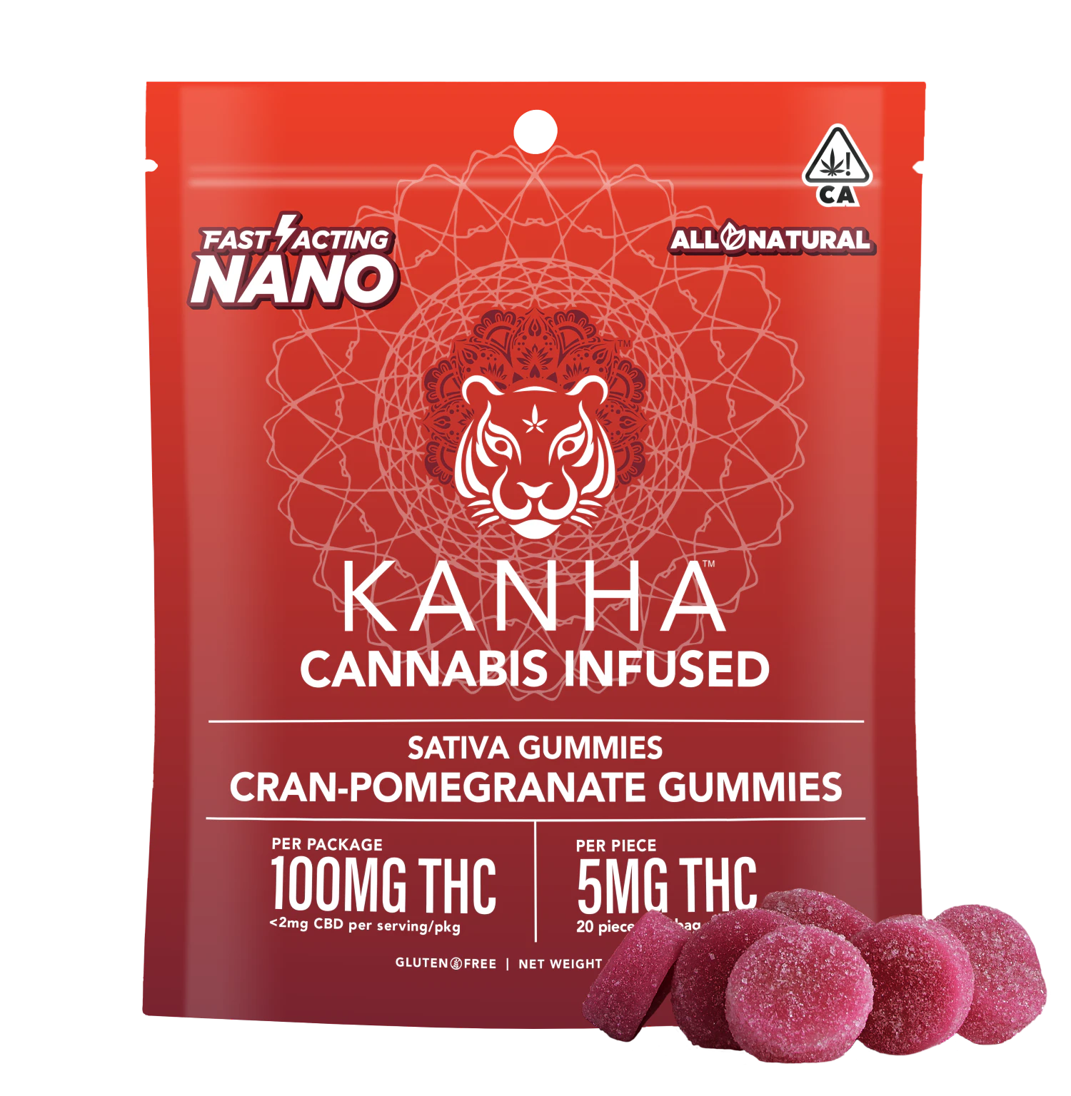 Old world meets new when cranberries, one of North America's few native fruits, meets pomegranates, a Mediterranean berry dating back to ancient times, for a sweet Cran-Pomegranate Punch. Made with the finest sativa oil and aromatic terpenes, these gummies enjoy better absorption and rapid effects thanks to our exclusive NANO technology for reducing cannabinoid sizes. Sold in packages of 20, each gummy contains 5mg of THC, an ideal amount for microdosing or customizing your experience. KANHA, the first brand to introduce fast-acting effects, remains the best with NANO gummies.