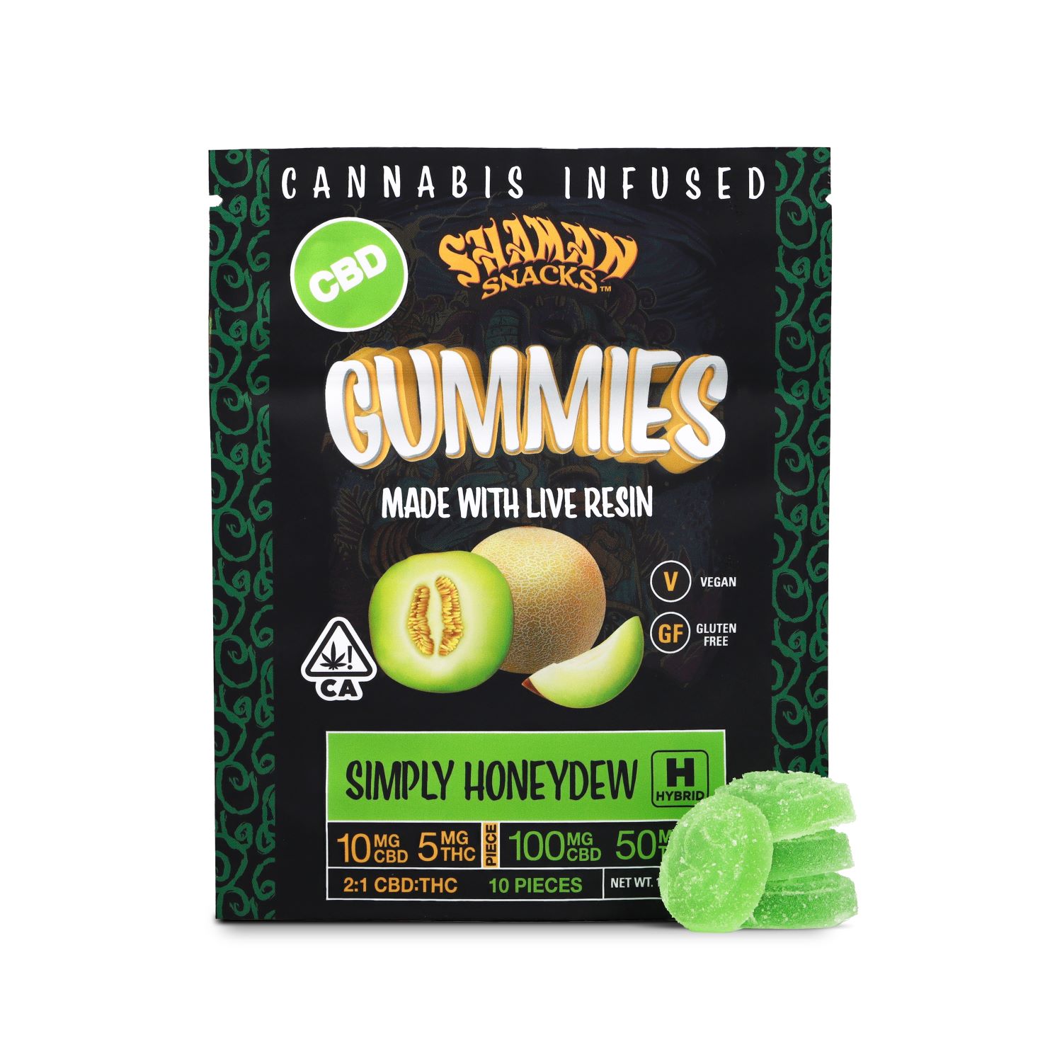 Shaman Snacks - 100mg 2:1CBD:THC Gummies - Simply Honeydew