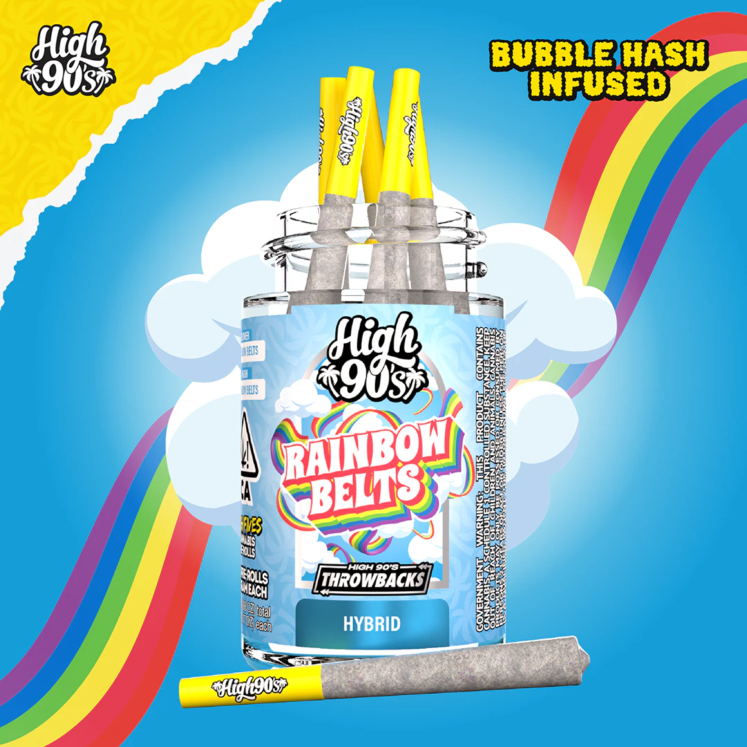 Rainbow Belts is a delicious hybrid cannabis strain that has balanced indica and sativa qualities. Its gorgeous appearance and mouth-watering flavor make it a great choice for hybrid enthusiasts seeking a long-lasting high. This strain has a sweet and tangy lemon lime taste with hints of grapes and spicy berries. Its effects include a boost of euphoria followed by a relaxing, tingling body high that can help alleviate migraines, headaches, and insomnia. Rainbow Belts buds have a stunning forest green tint with hints of purple, bright orange hairs, and a heavy coating of crystal trichomes.