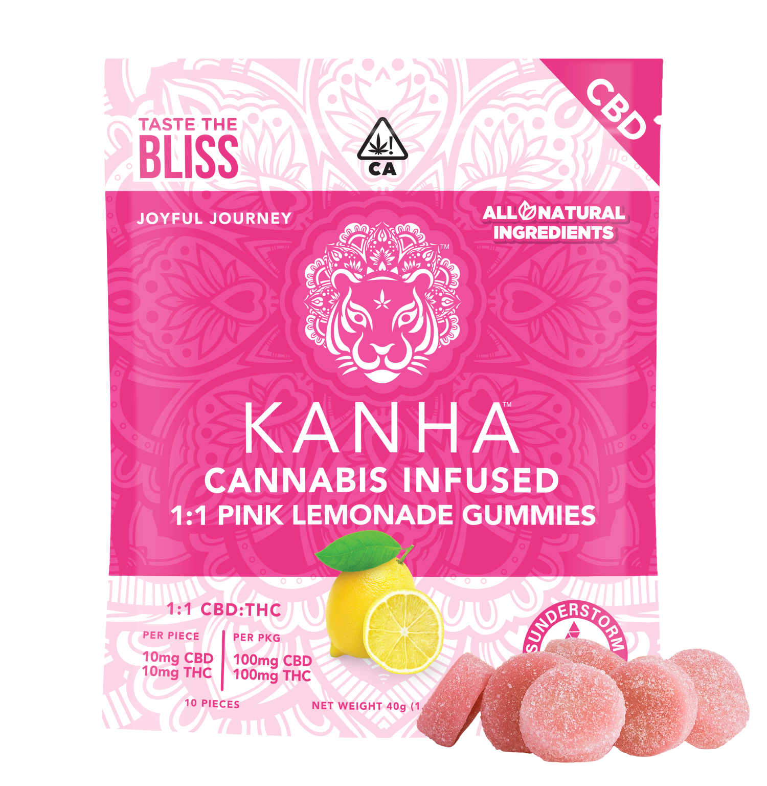 Kanha gummies are made with all-natural ingredients, coloring, and flavoring. Each gummy is infused with the highest quality cannabis oils to provide the most consistent, safe experience on the market. Our Pink Lemonade 1:1 gummies are sour yet sweet and made with 10mg CBD and 10mg of THC per gummy.
